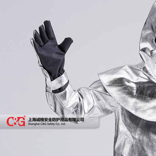 誠格鍍鋁隔熱手套掌部采用硅膠符合面料,具有防滑和耐高溫功能,手套中層為舒適阻燃針織面料。
